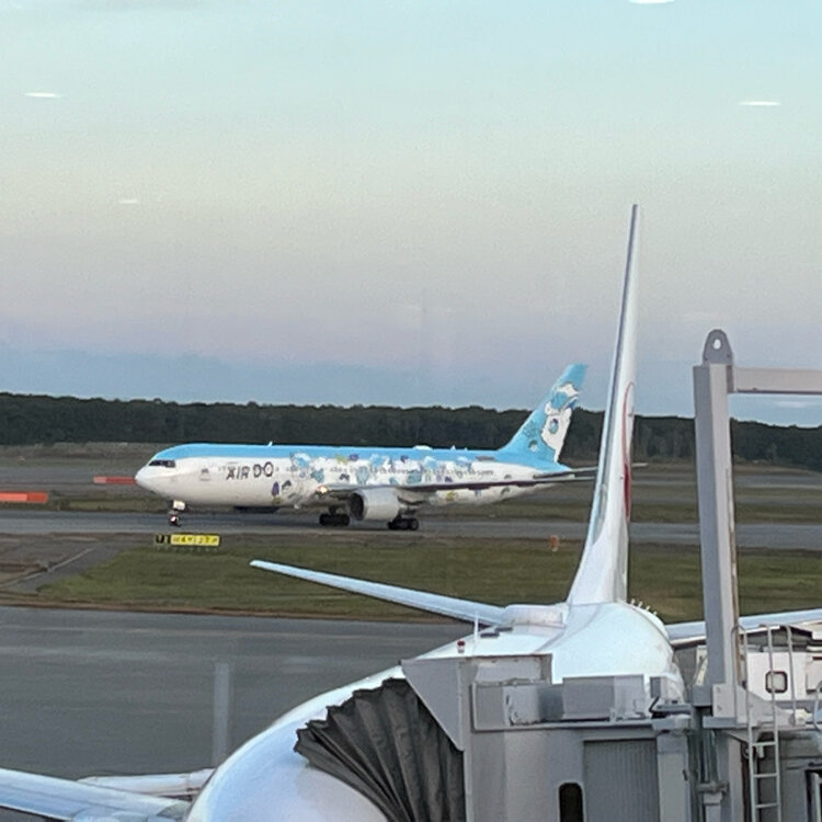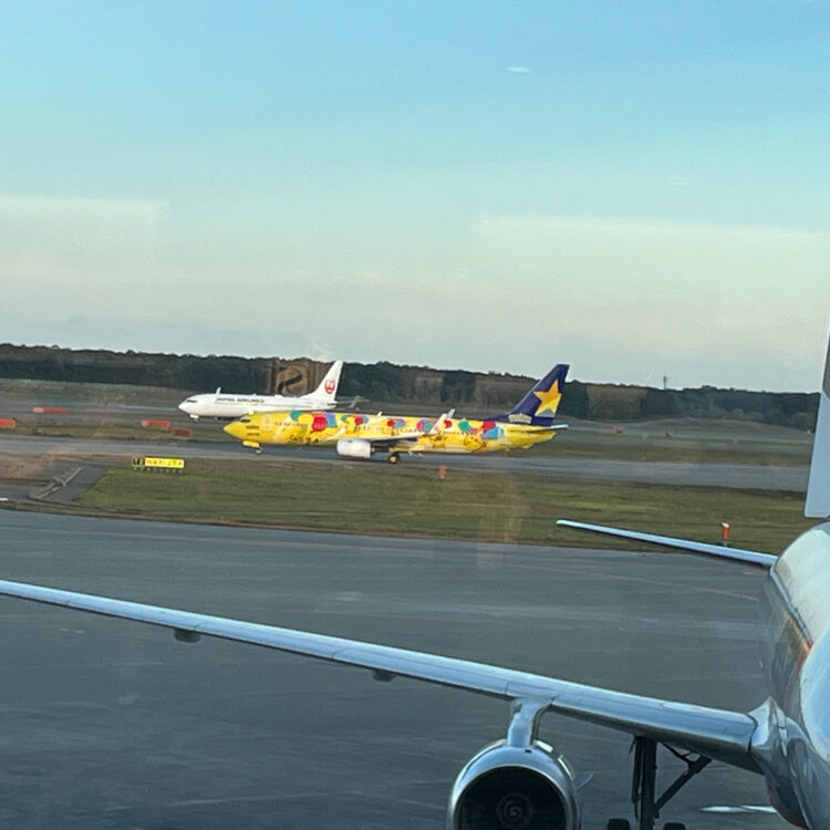 搭乗を待つ間、珍しい飛行機が停まっていました。