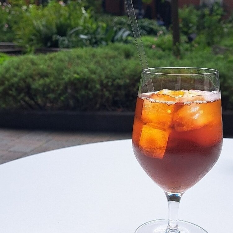 薔薇の咲くグリーンに囲まれた中庭を眺めながら、ゆったり大人のティータイムを過ごすことができて大満足。