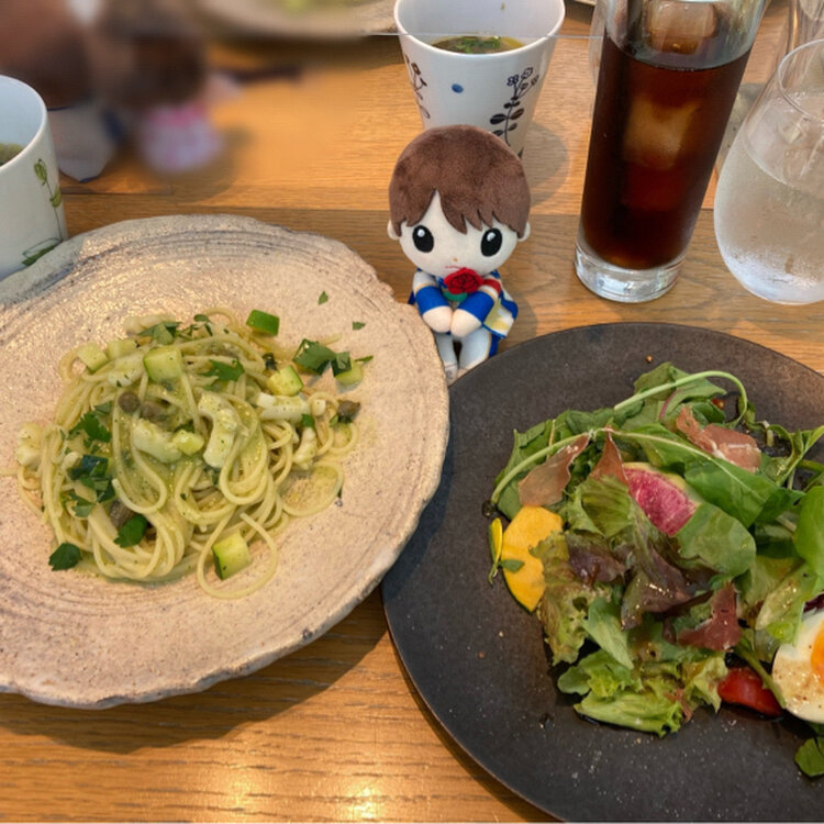 私はパスタを選択。パスタとサラダと根菜スープがセットになってます。