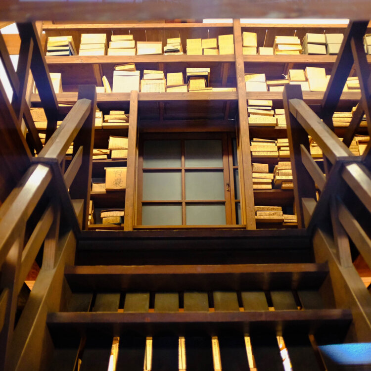 蔵書がずらりと並ぶ土蔵は圧巻!東西問わず様々な本たちがずらりと納められています。