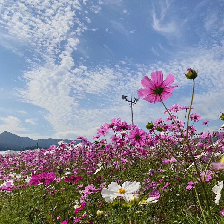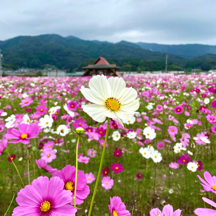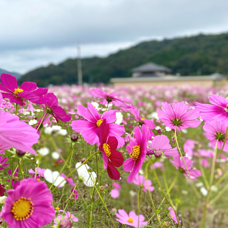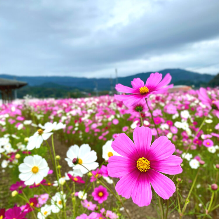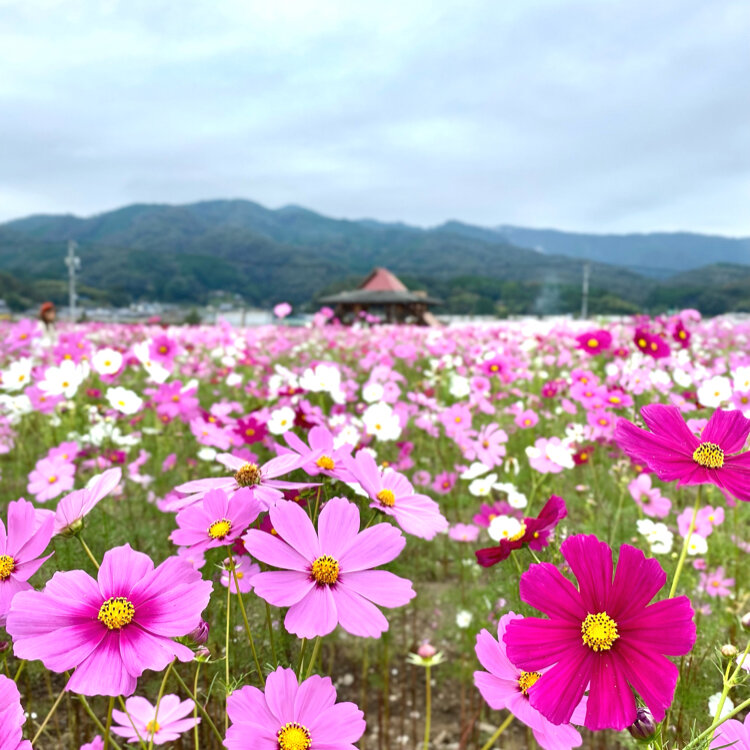 岡山県真庭市 北房コスモス広場✨ 曇り空でしたが満開のコスモスはとっても可愛らしく色鮮やかでした🤩 入園も駐車場も無料です。 県外からの観光バスも何台が来ていて、少しずつ日常が戻りつつあるんだなと感じました☺️ #岡山#真庭市#秋日和#私のことりっぷ#コスモス#満開 #コスモス広場#北房コスモス広場#秋桜