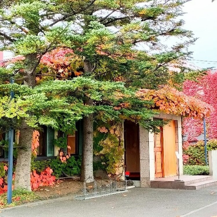 外観は蔦で覆われているので秋の時期は赤く染まってとても美しいです。