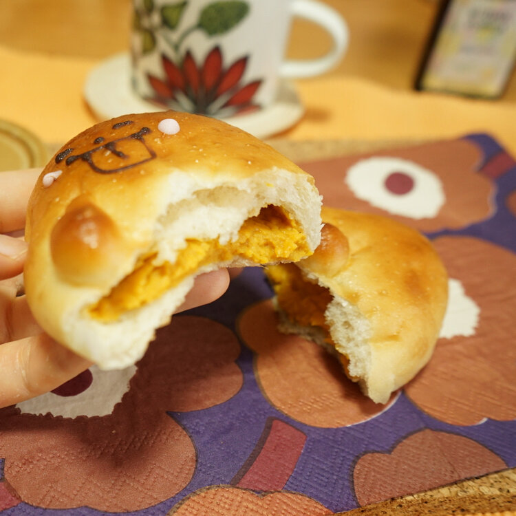 しかもゴーストのお腹には濃厚なかぼちゃクリーム。ミイラはメロンパン。可愛くておいしいおやつパンでした。一緒に購入したピスタチオのカンパーニュも間違いないおいしさでした。