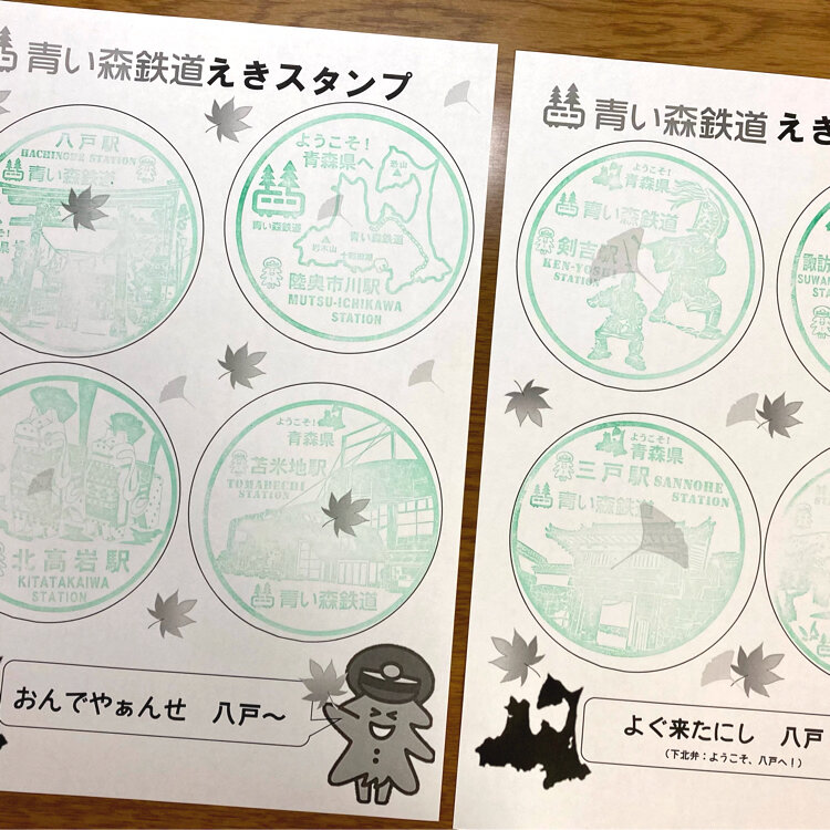 青い森鉄道のスタンプラリーと思いきや、スタンプ8個全て八戸駅に勢揃い👀✨並んで押してきました~(・́·͜・̀)ノ凸
