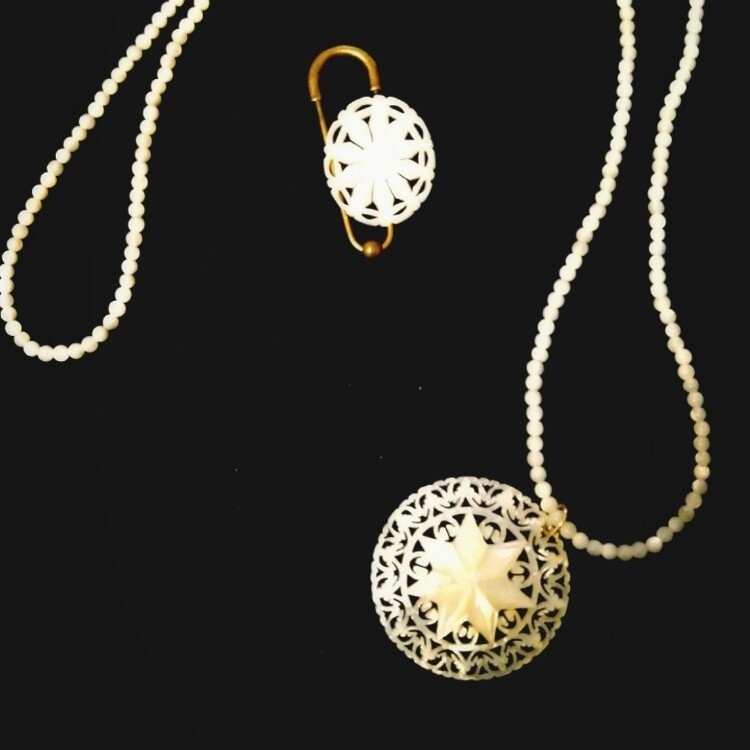 白蝶貝パールを繊細で高度な技術で彫られています。