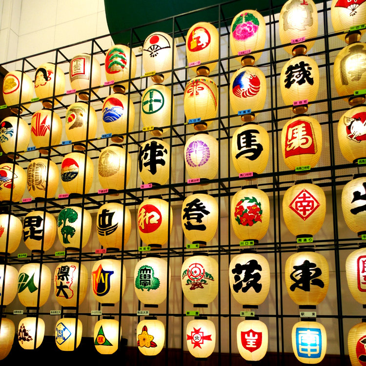竿燈とは…竹ざおを縦×横の格子状に組んだものに46個(又は48個)の高張提灯を吊ったもの