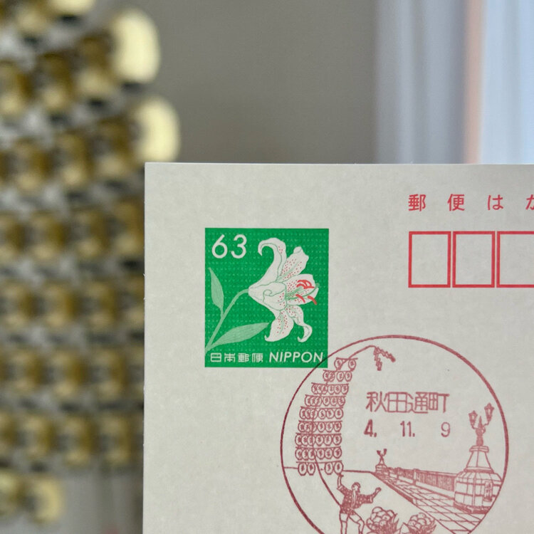 デザインは🏮竿燈祭り、通町橋、ふきのとう(秋田県の県花)