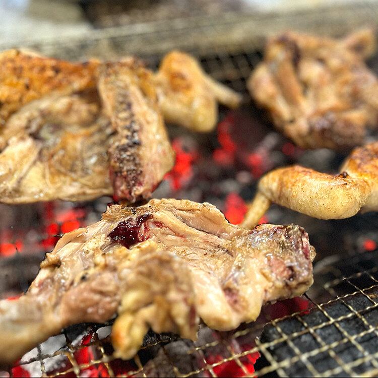 こちらは、鳥の半身が1人前で、それを豪快に焼いて食べるだけの