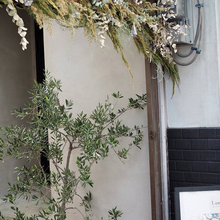 入り口のドライフラワーや