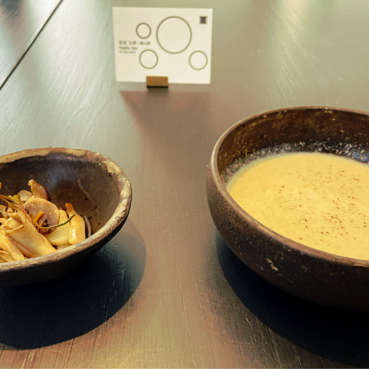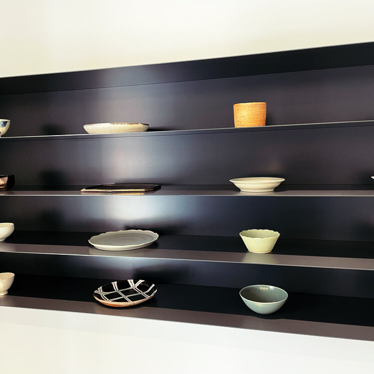 次に、店頭の棚に並べられた器のセット(一列)の中から、選びます。私は『吉田太郎さん』の器を選びました。