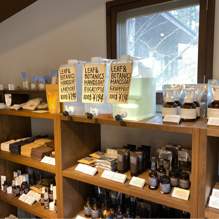 ハンドソープの詰め替え量り売りもあります。