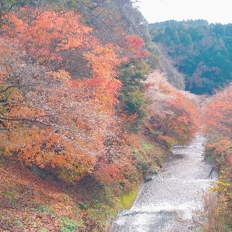 川の両岸を四季桜と紅葉の共演が綺麗なスポット、柿ヶ入遊歩道🌸🍁