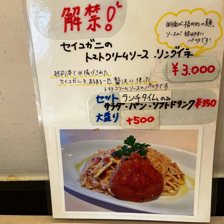 『トラットリア・デル・クアドリフォリオ』で『セイコガニのトマトクリームソース リングイネ』をいただきました🦀