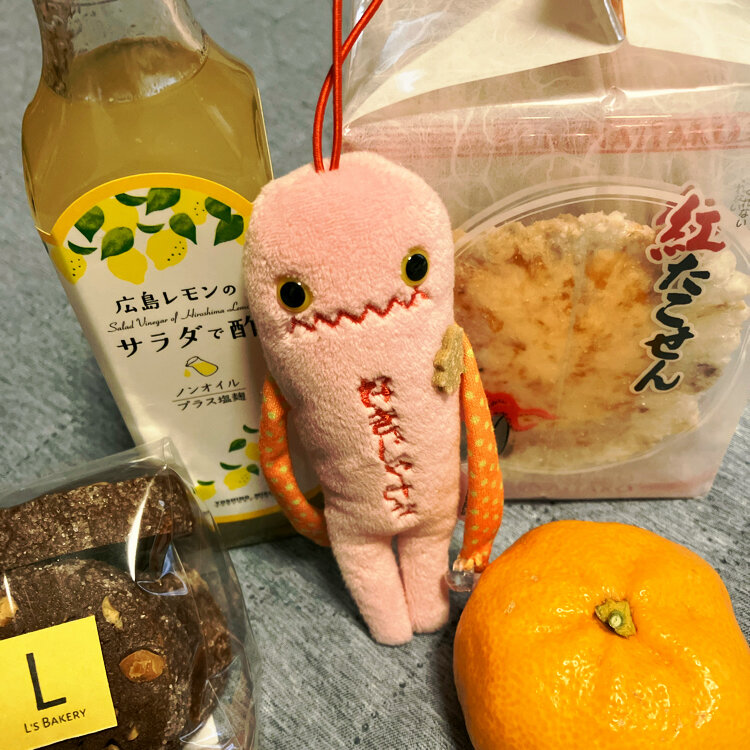 広島レモンサラダで酢.地元のクッキー.たこせん