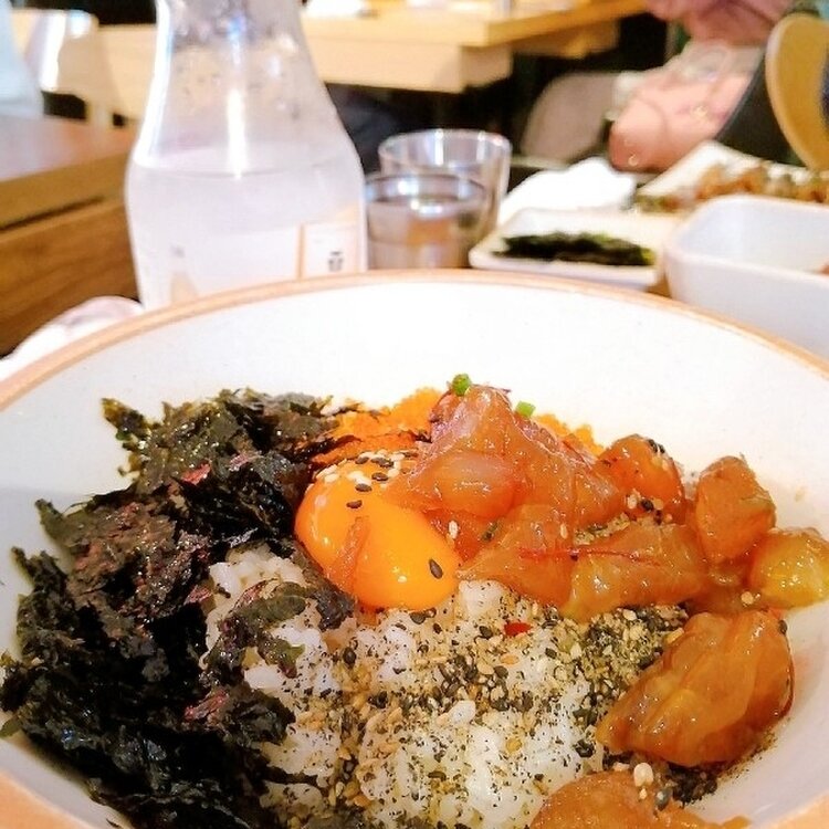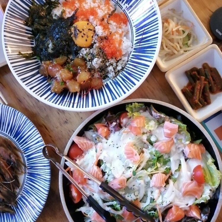ロゼパスタと迷った結果、カンジャンセウ丼を食べたのでした(。・ρ・)🦐