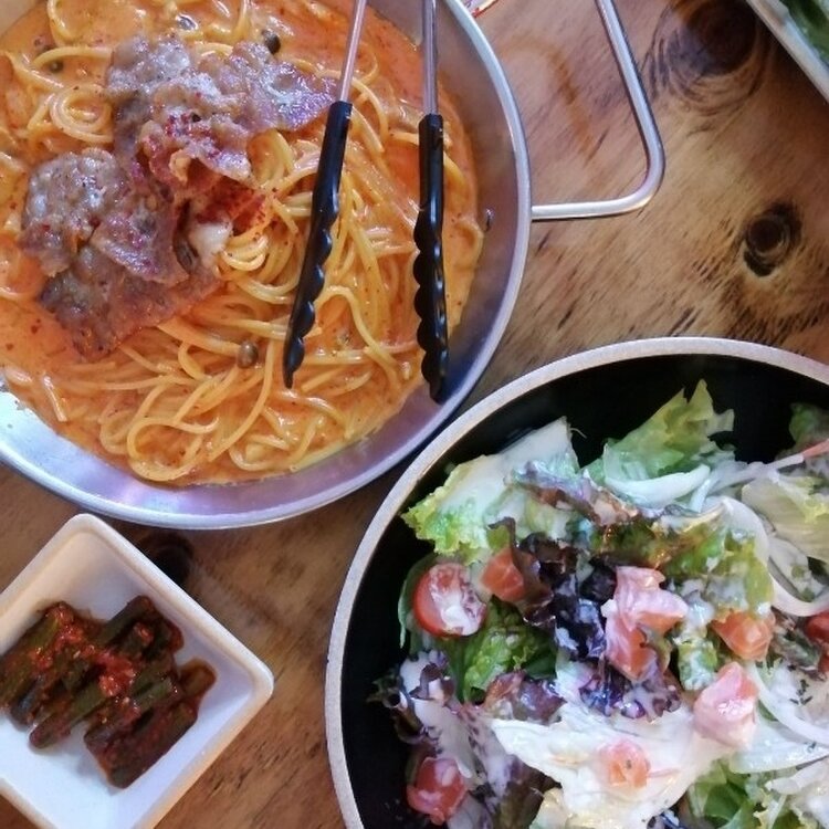 パスタをコチュジャンで味付けるなんてさすが韓国~