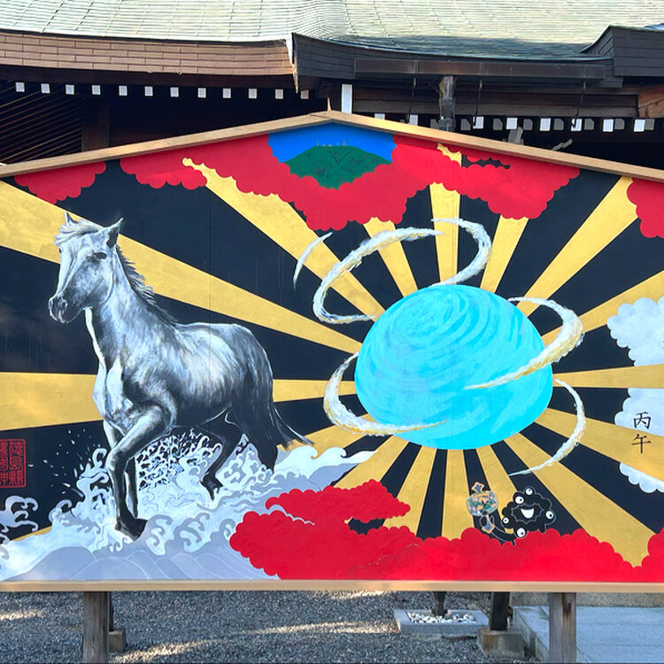 今年は60年に1回回ってくる丙午の年🫏年女の妹と馬の絵馬も見たくて護国神社にお詣りに行きました⛩️縦2.2m横3.6mの大絵馬✨右下にはちょこんと可愛い黒ミャクミャクさんが打ち出の小槌を持って、眉山に向かってエイヤァ✨✨馬が駆け抜けていくような、インパクトのある大絵馬にパワーを頂きました🫏✨今年初めてのおみくじは大吉でした☺️✨ 2026.1.12 #徳島縣護国神社 #午年 #大絵馬 #お詣り #おみくじ #大吉 #丙午