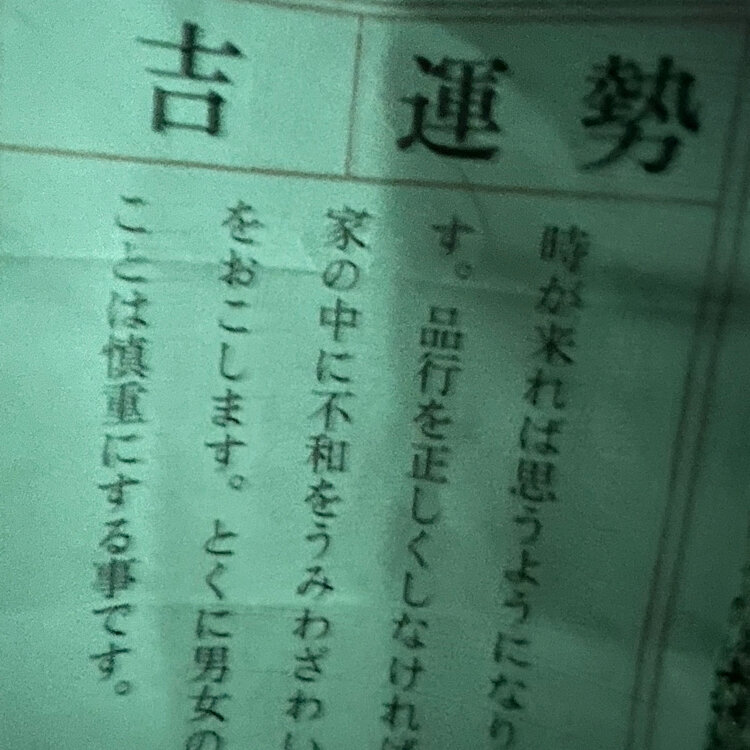 #記憶喪失#初詣#氏神様#1番大切#ちゃっかり#写真とってて#内容唖然#あるわけないわ#おばあちゃまですもの#中吉だったらしい#米子#今年もよろしく#昨年酒はおぼれたわ#色恋はおぼれず