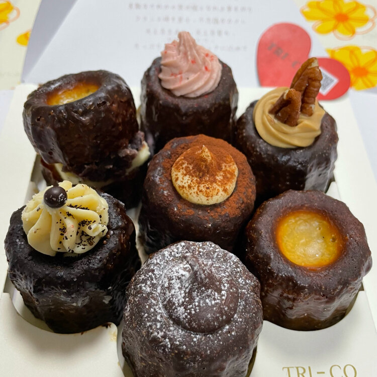 フランスの伝統的なラッピング方法「パケモンテ」をイメージしたお洒落な三角の箱と持ち手のリボンがキュートだと話題の「カヌレ トリーコ」。