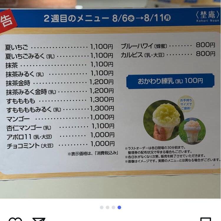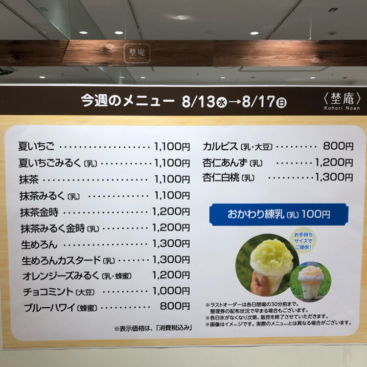 埜庵@町田(小田急百貨店) 夏営業の催事出店中です 今年は完全セルフスタイル 削り機の前で各々へ手渡してくれます 出来上がるを目の前で見られるのて楽しい… 最初はすももももを 酸味の方が勝ってる感じで猛暑日には最適! 時間をおいて2回目チャレンジしたら削り機がまた同じお兄さんで恥ずかしかった… 抹茶金時はオーナーさんイチオシだけあって抹茶の濃さが際立って美味しかった! 8/13からメニュー変更なのでまた行きたいなー