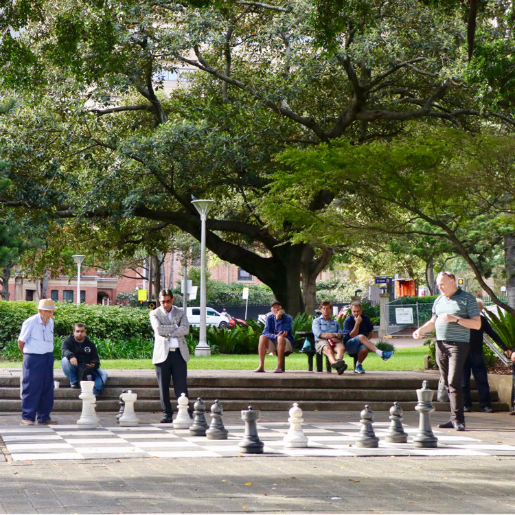 シドニー③ 公園で巨大なチェスに興じるシドニーのオジサマ達😂。みんなすごく真剣!! #オーストラリア #シドニー