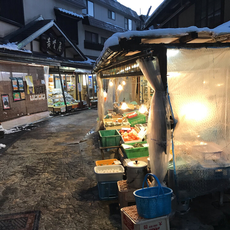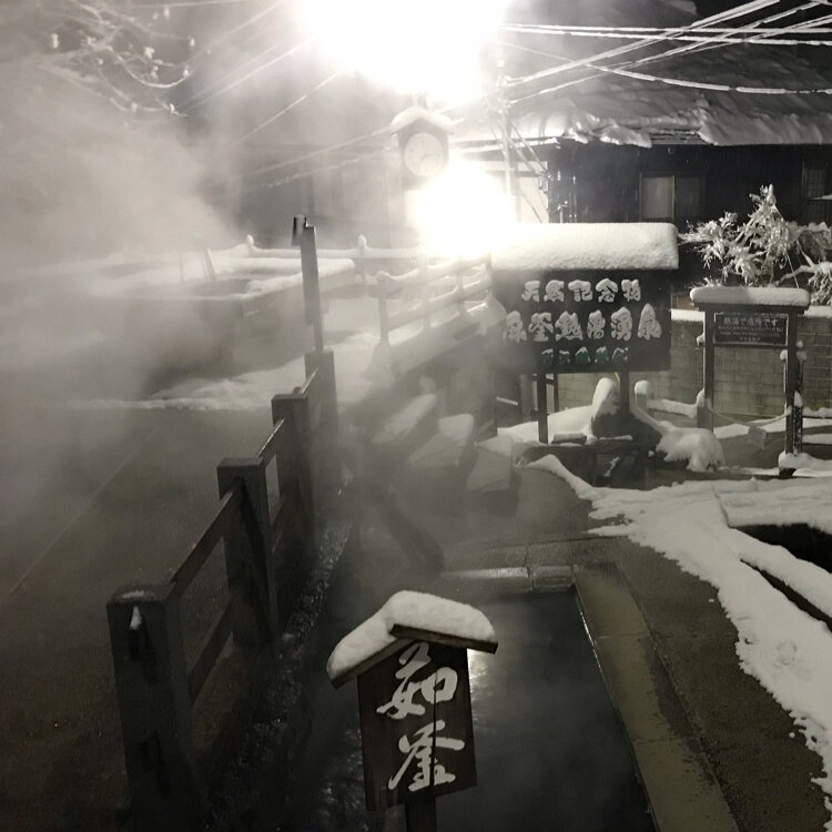 野沢温泉スキー場から温泉街へは動く歩道で行けるから楽々。 野沢菜のおやきに温泉饅頭食べ歩き。 雪降る中の散策楽しかった〜。