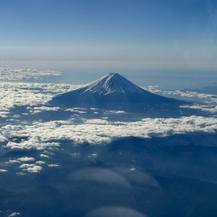 今朝は電車から寒空に富士山がくっきり見えました。🗻 そういえば、年末の旅行で飛行機からの見た富士山。 あんな上空からの富士山は初めてで感激したなぁと ふと思い出しました。