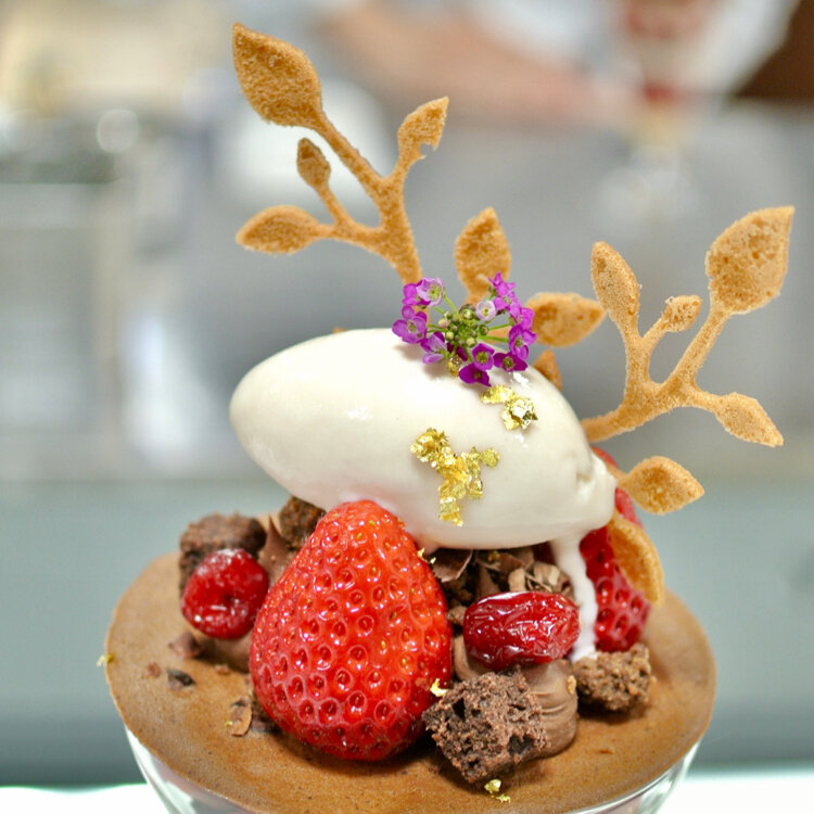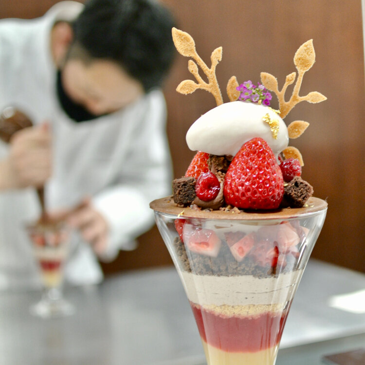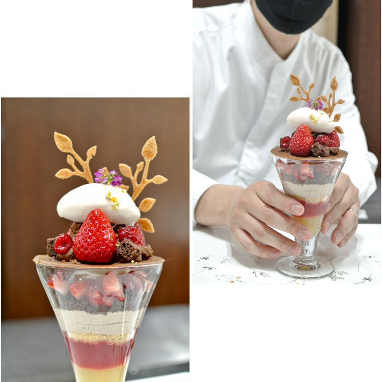 約20のパーツで構成されている PAYSAGE江藤シェフ渾身のパフェです。