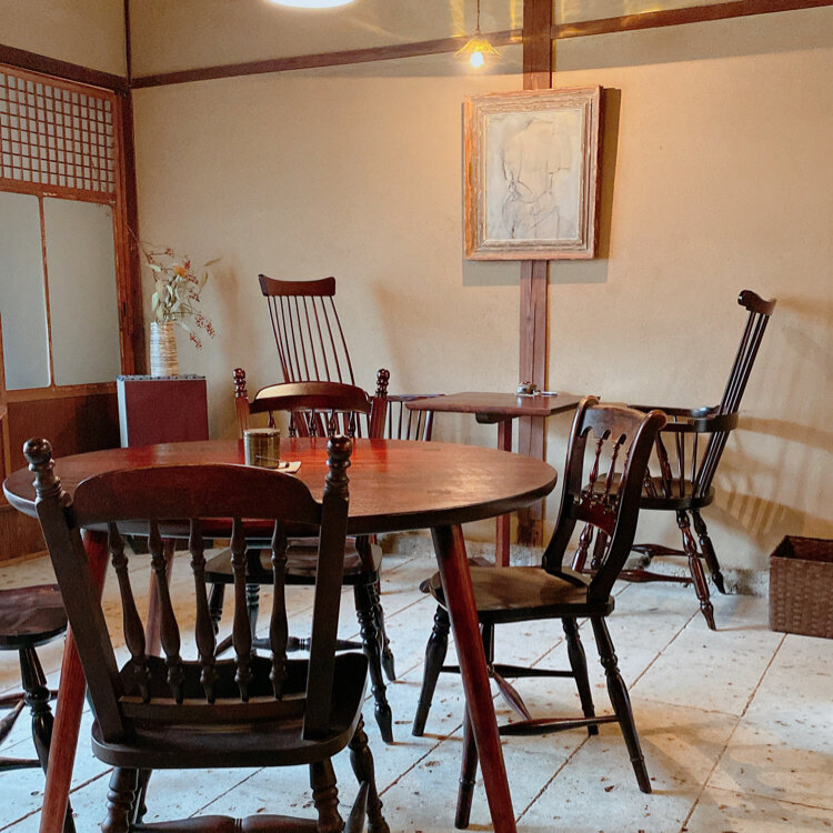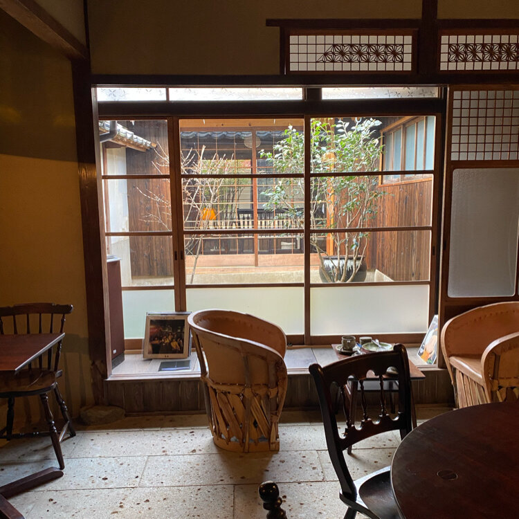 古民家のガラス戸の奥を覗くと、中庭からの彩光で見えた喫茶が、なんとも素敵な雰囲気で✨吸い込まれました✨