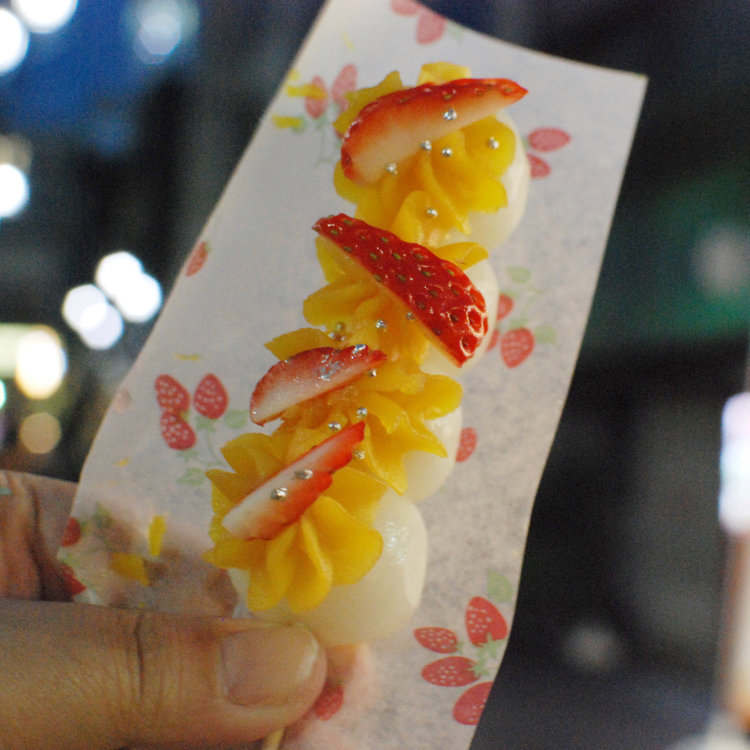 四色団子だけ食べ歩きで、こしあんといちご紅白団子を持ち帰り🍡