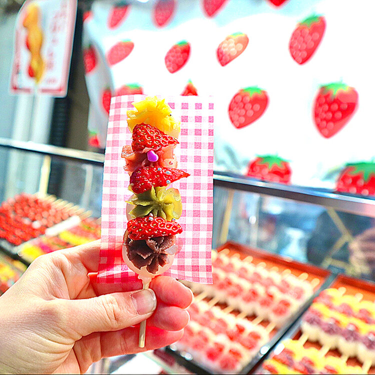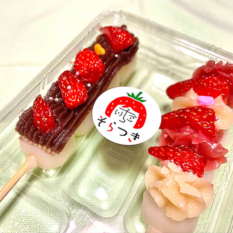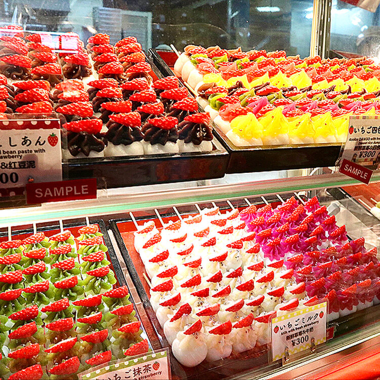 いちご和スイーツ専門店で、どのお団子にもいちごがのっています🍓