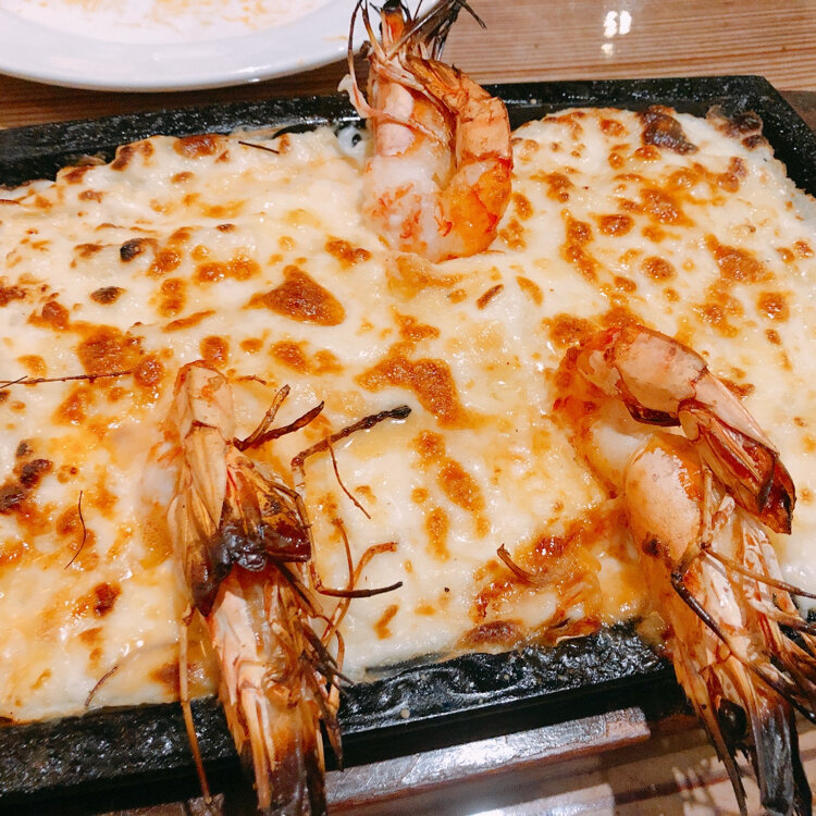 えびグラタンもホワイトソースが美味しかったー😊自家製のロールパンとかもあって、ホカホカのやわやわでした🥐