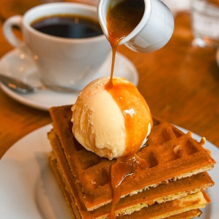 平日でも行列のビビモン😊 2組目で案内されてラッキー💕 熱々のキャラメルソースがたっぷりついてくる焼き立てサクサクのワッフルは人気メニュー✨ バニラアイスがいい感じに溶けて悶絶😆 キャラメルソースかけ係(笑)の息子はテッパンのプリンパフェ🍮 期間限定のキルシュの効いたチョコレートパフェも気になりました❗️ #パフェ #鎌倉 #Myことりっぷ