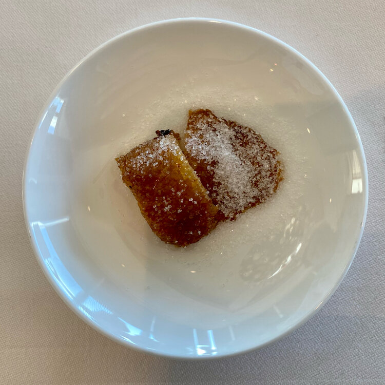 まずはお砂糖をたっぷりかけた甘くて油じゅわ〜の皮を一口頂きます。
