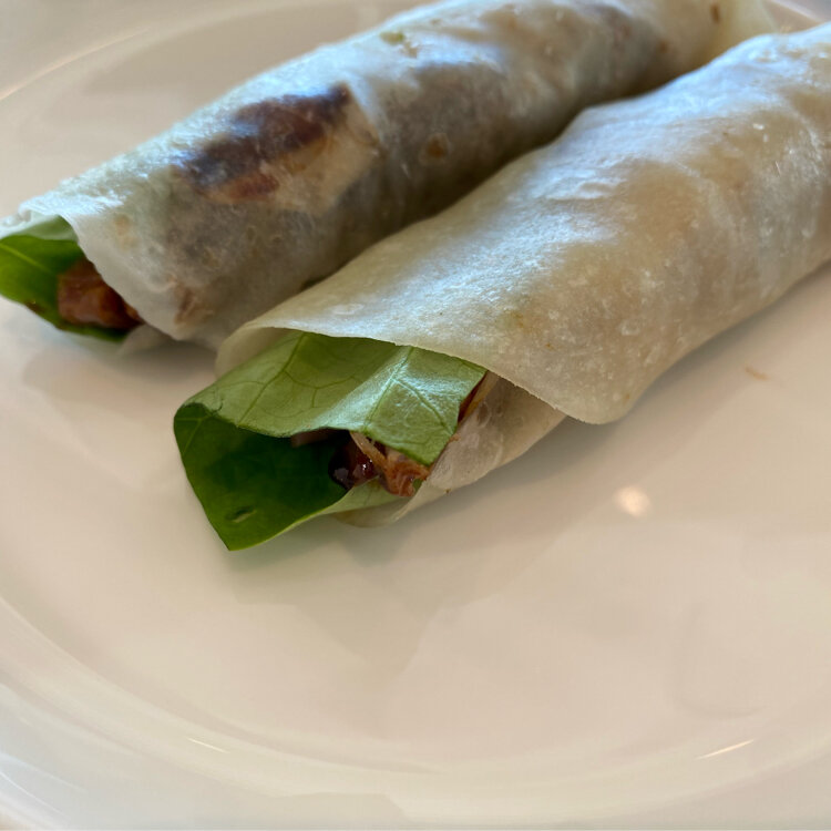 こちらの北京ダックは身の部分も一緒に包まれてるタイプ。
