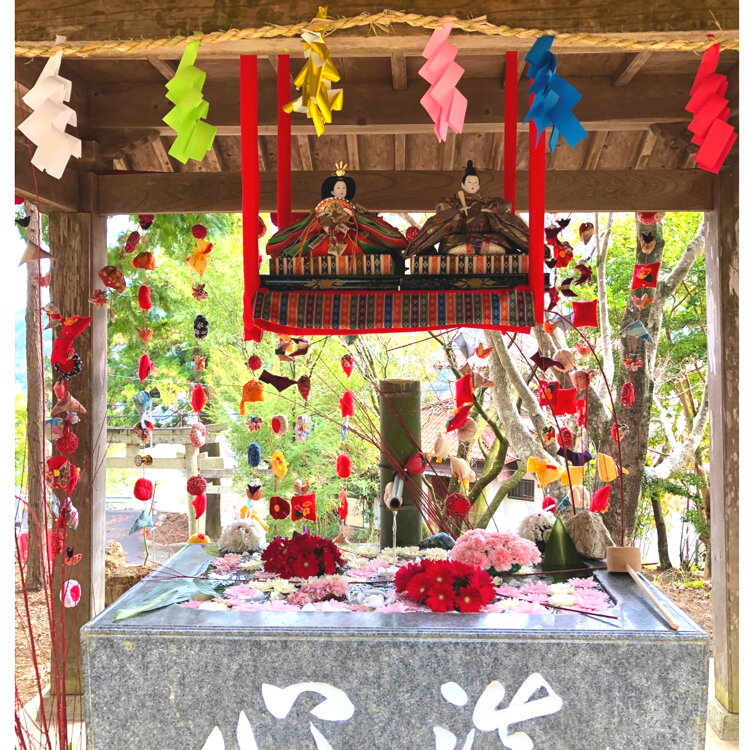 「とくしま花手水めぐり」と「徳島冬詣」🌸🌼💠❄️2つのお詣りをしてきました。色とりどりの花手水舎にはお雛様、吊るし雛が飾られて、もぅ春の装いでした🌸社務所は閉まってましたが、書き置きの冬詣の御朱印を頂いてきました。ふと見るとヤマガラのエサ箱が置かれていたので、ひまわりの種を持ってヤマガラを探しましたが、どこで餌をあげればいいか分からず、ヤマガラの声だけ聞いて帰ってきました。もぅ、すぐひな祭りですね🎎これから勝浦町はお雛様で彩られる季節がやってきます。石段に飾られるお雛様に、また会いに来ようと思います😊