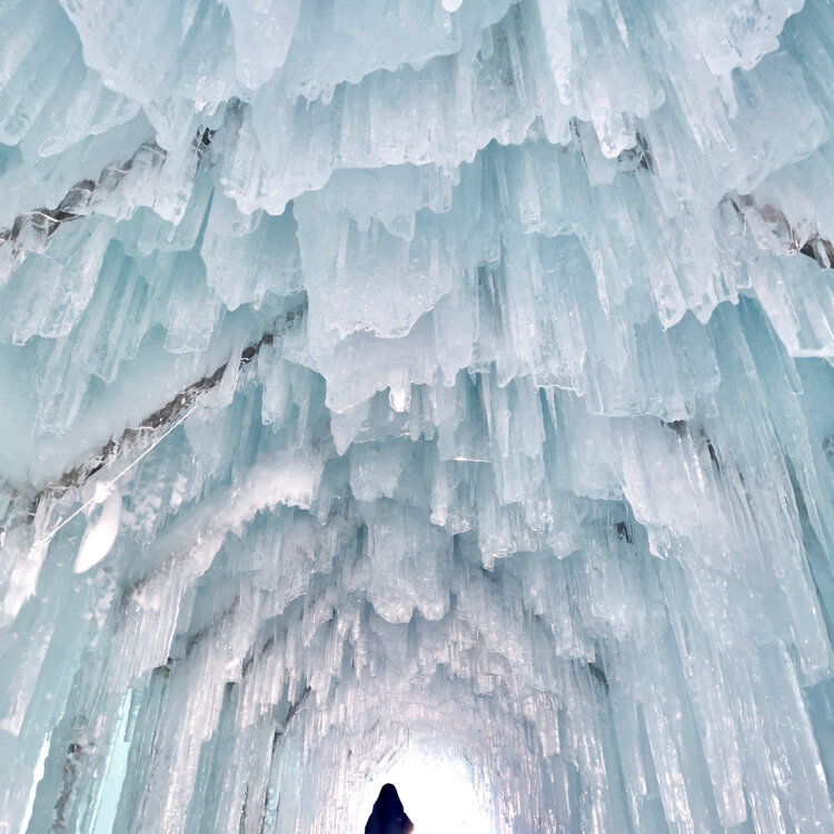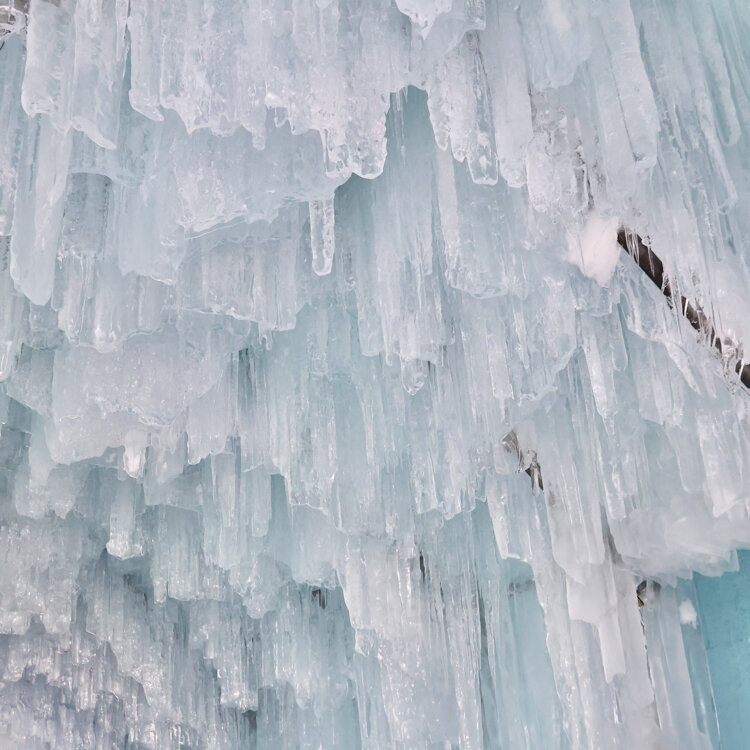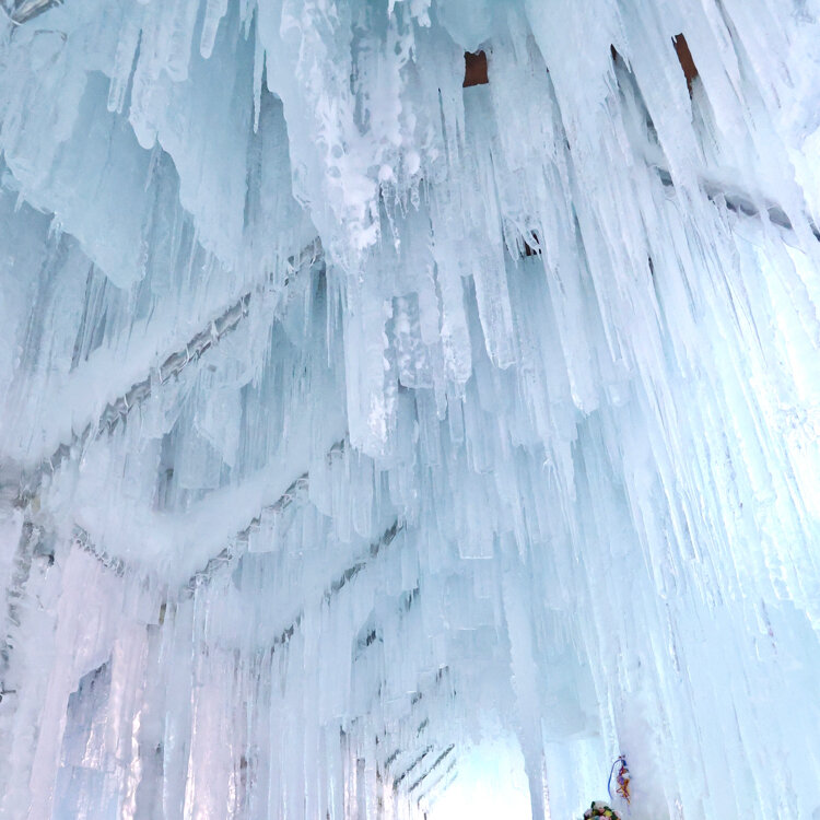 12月中旬から約1ヵ月24時間、散水作業を行い、また重機を使って築き上げた、自然の織りなす氷の芸術作品。