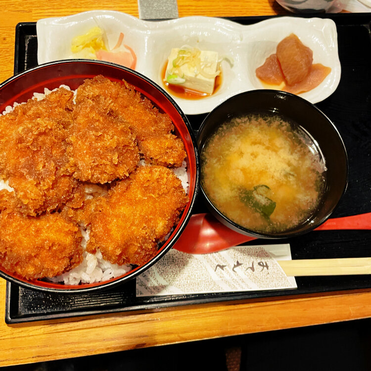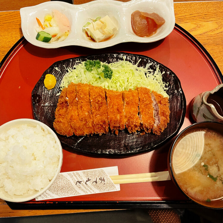 国道120号沿い関越自動車道沼田インター付近は、とんかつ街道と呼ばれるほどとんかつ屋さんが軒を連ねます。 スノーパーク尾瀬戸倉でスキー⛷を滑って、夕飯はとんかつ街道から少し外れた場所にあるみよしさんへ🚗 さっくさくの衣に包まれたロースカツ定食をいただきました❤️友達はソースかつ丼🥢 サクッと完食、美味しかったです👍