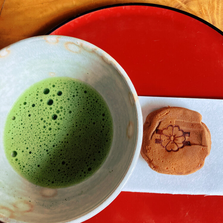 目の前でお店の方がたててくれます🍵