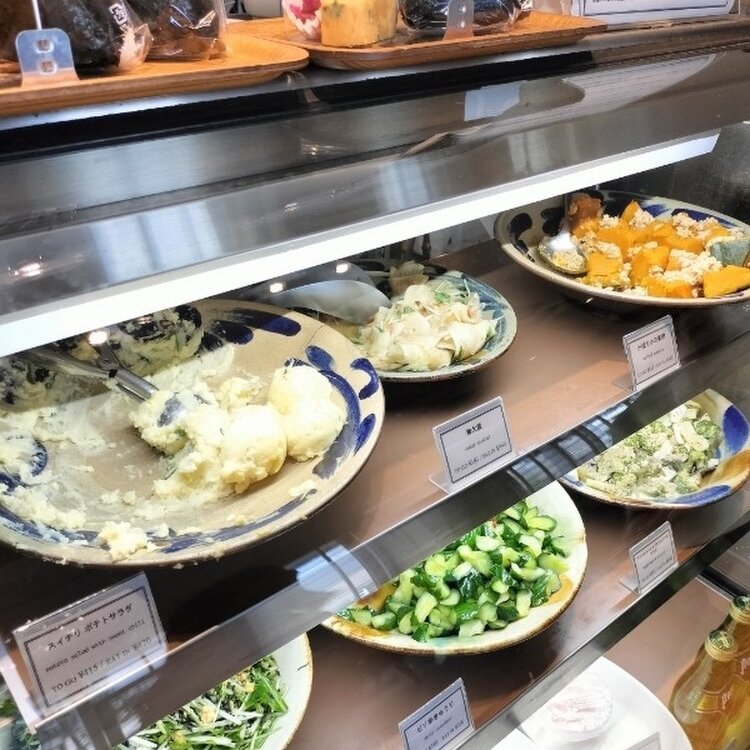 今日は 🍙明太子クリームチーズ、ポテサラ、小松菜のごま和え をチョイス☝