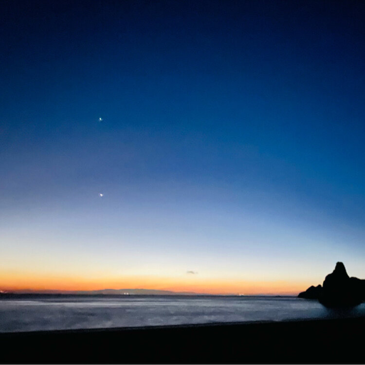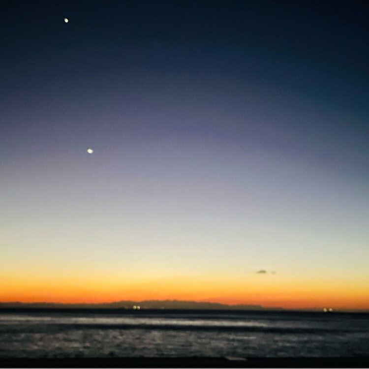 縦に二つ並んだ金星と木星があまりにもくっきり見えたので路肩に車を停めてもらいスマホで🤳