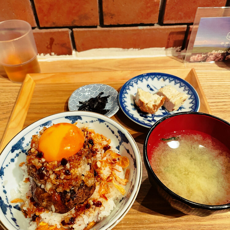 長崎県平戸市のアンテナショップ。 平戸丼をダブルで頂きました。 イノシン肉のハンバーグでクセかなく美味しいかった。 町のゆず胡椒で味変して最後まで美味しく頂きました。 #ハンバーグ #シビエ