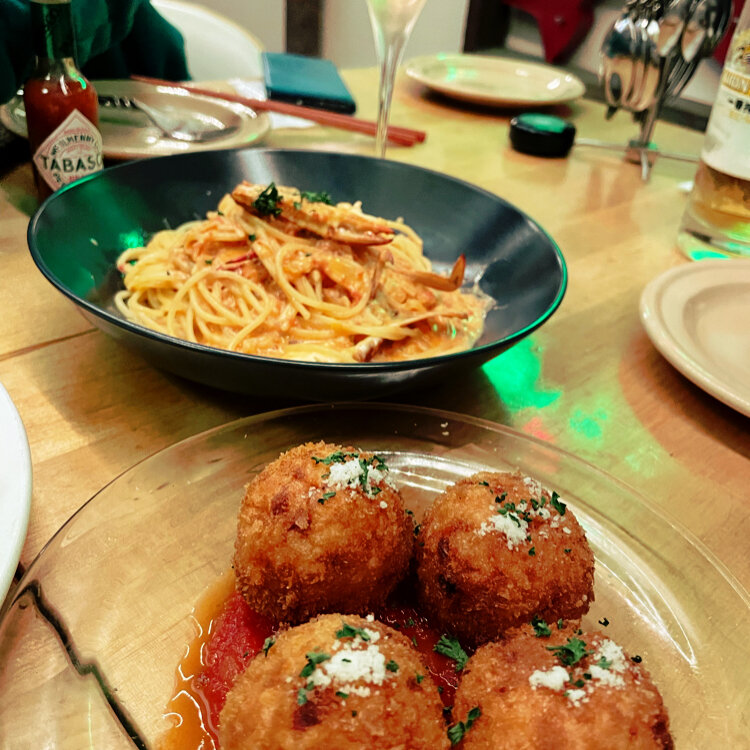 白馬姫川温泉ペンションTOMATOのダイニングバートマティートは、白馬エコーランドにあります❄️イタリアンのお料理はどれも絶品❤️2枚目のしらすとネギのピザ🍕はめちゃくちゃ美味しくお気に入り👍ライスコロッケにパスタ、スキーの後は炭水化物とりまくりでした😉