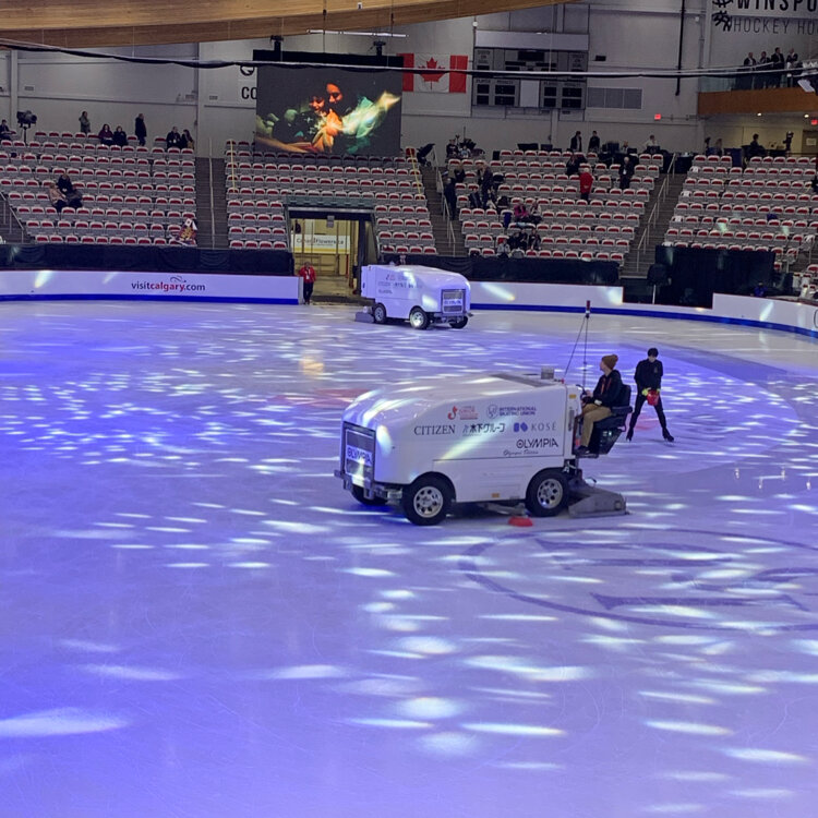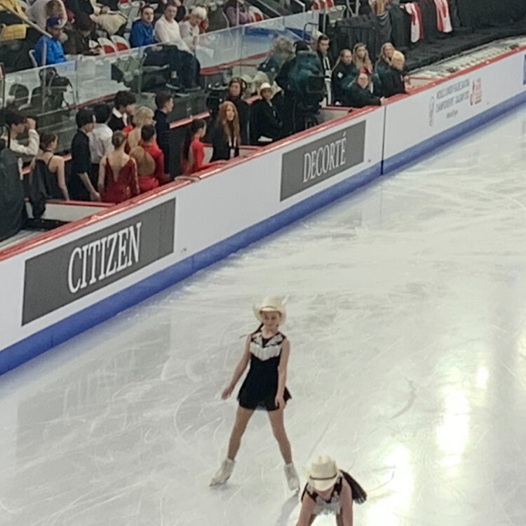 引き続きの投稿です ここのアリーナの天井が素敵だった〜 こうやってリンクコンディションを整えてくれる 裏方スタッフさんがいてこその大会 表彰台もメープル形🍁 チームメイト🇨🇦を応援してるジュニアの子たち 黄色い声援がおばさん心に刺激をくれました😆 フラワーガール💖COW GIRLのコスチュームに COW GIRL HAT カルガリーっぽくて好き しかも似合っている〜😊将来の選手がいるのかしら..