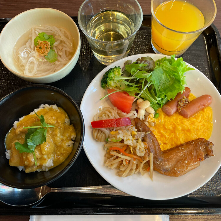 朝ごはんは、「Nha Viet Nam(ニャー・ヴェトナム)」のバイキング。京都駅前の「ダイワロイネットホテル」の2階のお店に何度かお邪魔した事が有って、ベトナム料理は珍しいので楽しみにしていました。お目当てのフォーやココナッツカレーが美味しくておかわりしました。名古屋らしい手羽先や小倉トーストも食べられて嬉しかったです。