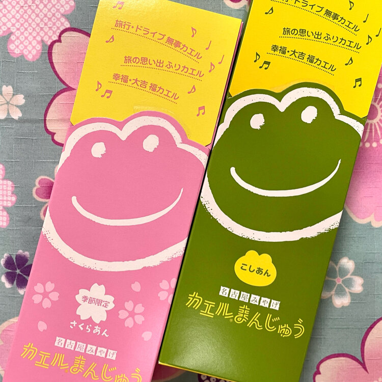 季節限定のさくらあんと通常のこしあんのカエルまんじゅうを買うと、セットスリーブの可愛いい箱に入れてくれました。