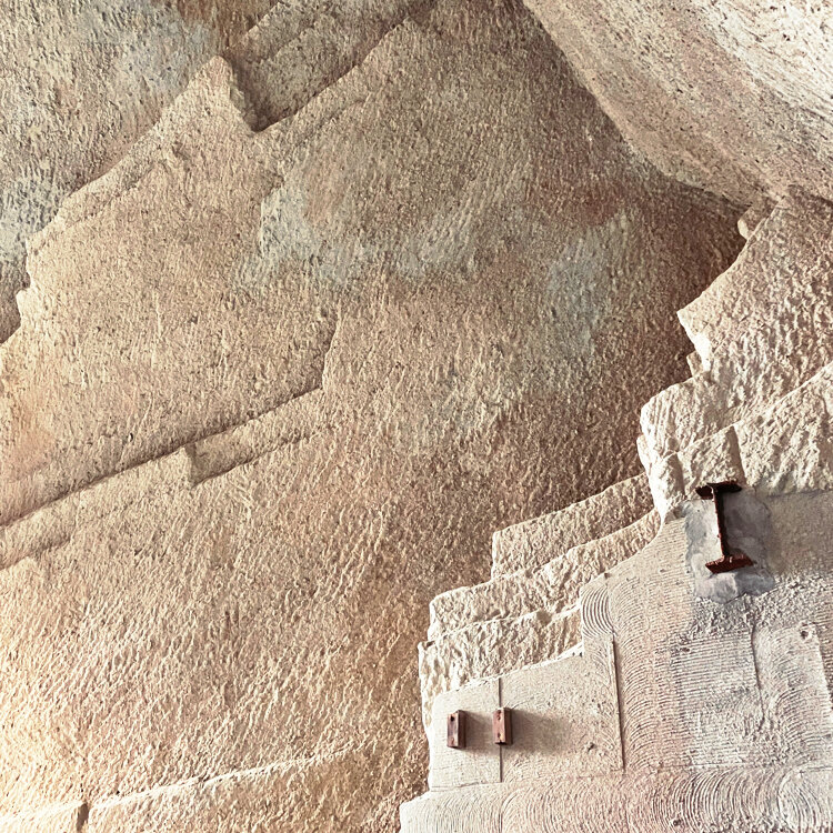 近代以前の手作業による採石の痕跡と
