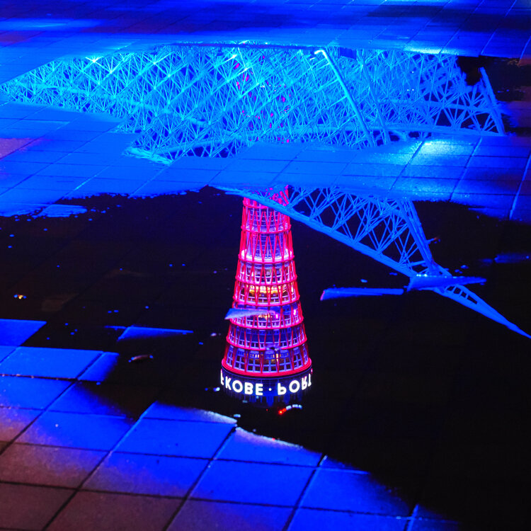 🩷リフレクションタワー🗼神戸ポートタワー˖ ⁺ . ✧꒷꒦+⁺ .✧💙 ドローンショーの直前まで雨が降っていたので、雨上がりにたくさんのリフレクションタワーが出現🗼 こちらにもあちらにも💙💖 #開運旅 #ことりっぷと一緒 #ことりっぷ神戸 #神戸ウォーターフロント #メリケンパーク #ハーバーランド #イルミネーション #ライトアップ #神戸ポートタワー #神戸 #リフレクション