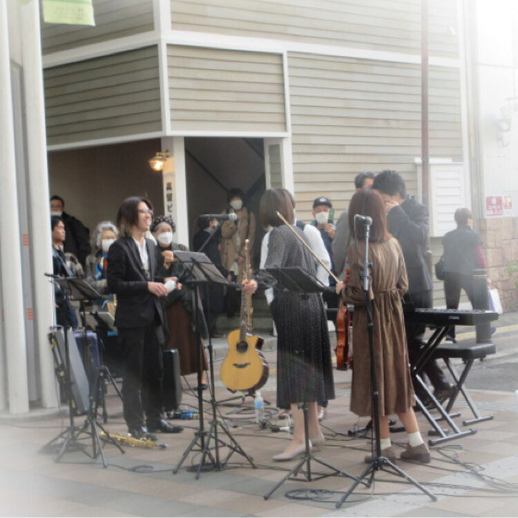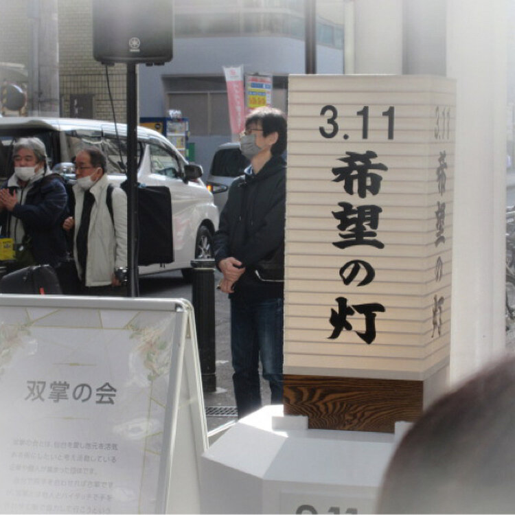 東日本大震災を偲び演奏が! 、 幾重にも人の輪が重なり 大勢の人達が聴いてました! 、 今日で12年目になるが 未だ未だ30000人以上 今でも避難をしている!