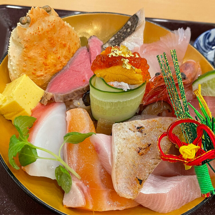 1泊2日金沢旅🦀🐟🏯⛩✨ 🚄11:00に到着して近江町市場へ直行🚌💭 ゆたか水産さんの近江町ゆたか最強丼 カニ・いくら・うに・のどぐろ・マグロなどなど たくさんの新鮮な魚がとろけちゃいました ちょっと器を回すと、能登牛のローストビーフも 見つけて嬉しい限り👀💕 しいたけ・かんびょう・ごま・ガリを混ぜ込んだ シャリは、柑橘の搾り汁が入っているらしく、 さっぱりと爽やかでペロリと完食😋 セットのさわらの中骨の味噌汁も美味しかったです👍 #近江町市場 #ゆたか水産 #ゆたか最強丼